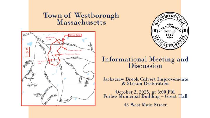 Navigate to Westborough Jackstraw Brook Culvert Improvements Public Info Meeting - October 2, 2025